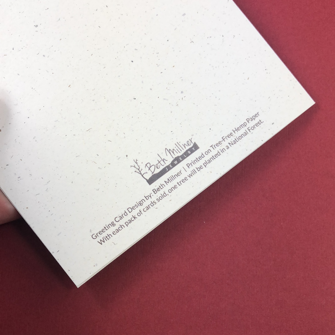 The card imagery was created by Beth using acrylic paints and then printed on eco-friendly hemp paper. The greeting card features a blank inside for you to personalize your card.