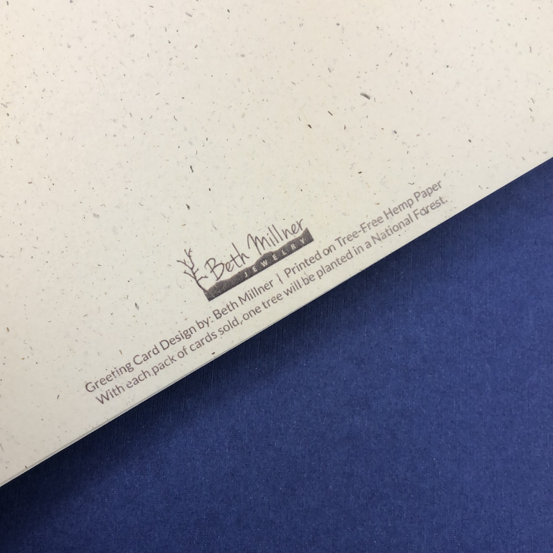 The card imagery was created by Beth using pen and ink and then printed on eco-friendly hemp paper. The greeting card features a blank inside for you to personalize your card.