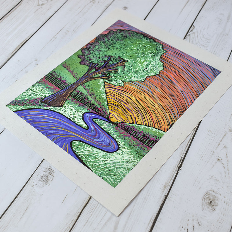 Journey Along a Gilded River Artist Print - Tree Planted with Purchase